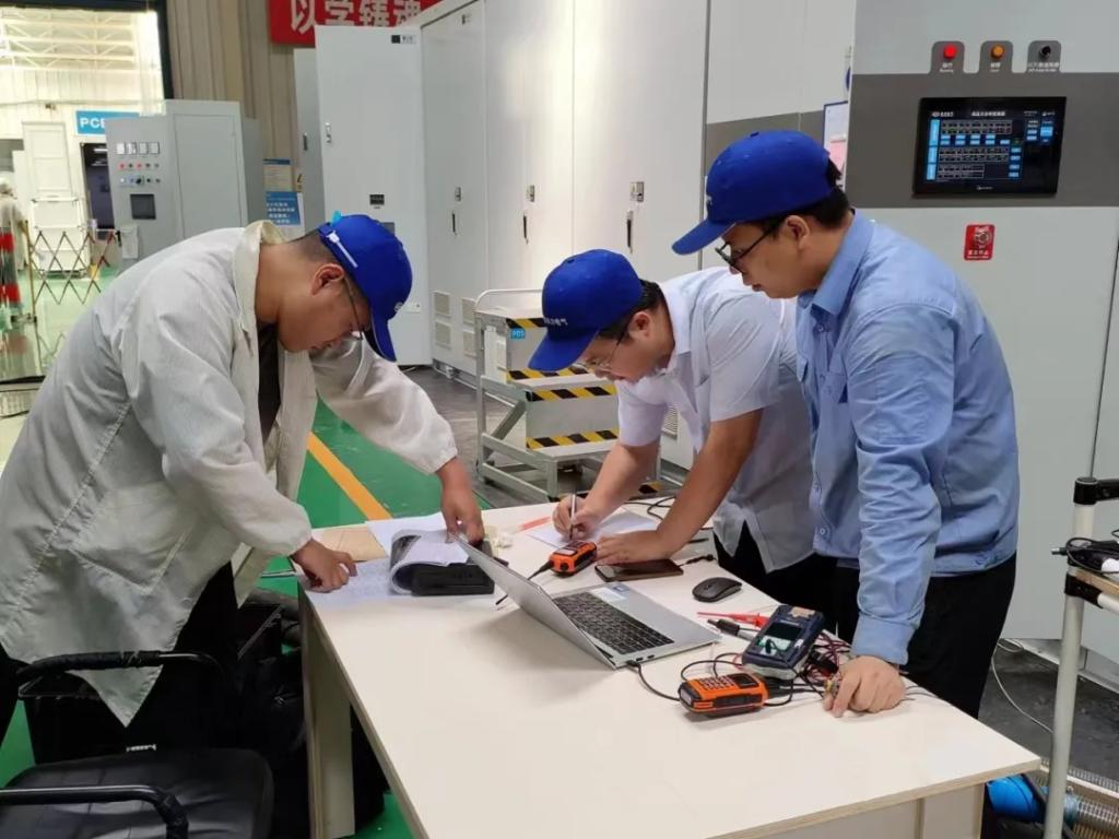 正是赖成毅和团队的坚持和严谨,,,,,今年6月,,,,,22兆伏安水冷型高压变频器完成第三方型式试验。。。。。。。。7月,,,,,通过了中国机械团结组织的专家见证试验和装备出厂判断。。。。。。。。