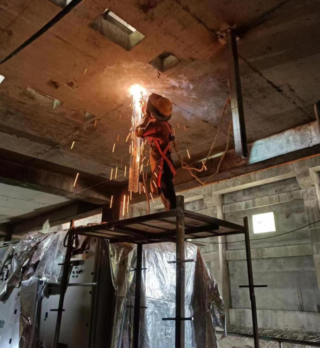 ◆东方国际尼泊尔山涧水电项目职工正在举行电缆桥架装置事情