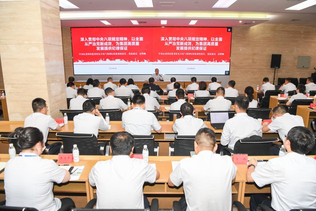 凭证深入贯彻中央八项划定精神学习教育事情安排,,,,,,,东方电气集团党组向导班子成员以上率下,,,,,,,面向下层党员干部职工教学专题党课,,,,,,,指导各人深刻熟悉学习教育的主要意义,,,,,,,切实增强贯彻落实中央八项划定精神的政治自觉、头脑自觉和行动自觉,,,,,,,以越发严实的作风、越发高昂的斗志助推“十四五”妄想圆满收官。。。。。。